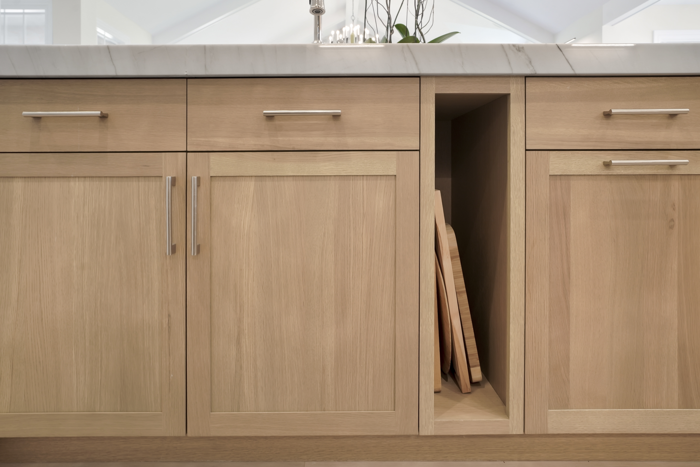 This misconception is especially common among homeowners shopping for white oak cabinets, including sought-after options like rift-cut white oak. Even this premium cut—prized for its cleaner, straighter grain—still exhibits natural variation, because it comes from a living tree, not a mold.